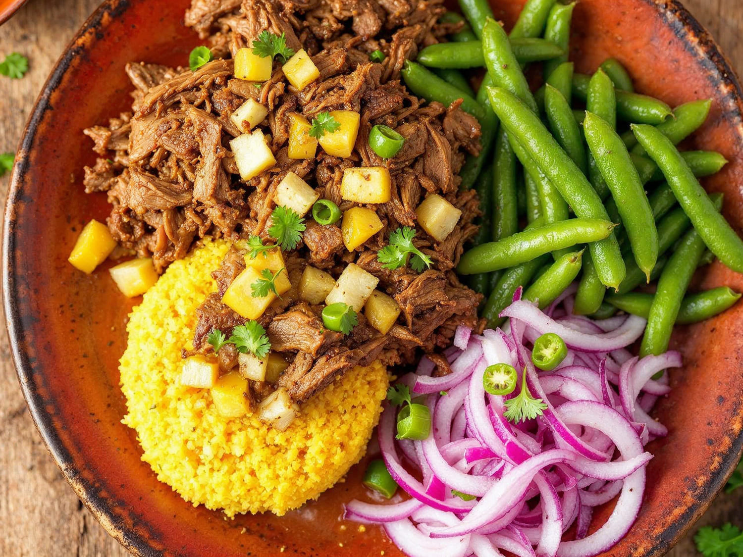 O arrumadinho é um prato típico da culinária nordestina que, como o nome sugere, organiza uma combinação deliciosa de ingredientes em camadas ou lado a lado no prato. Geralmente leva feijão verde (ou de corda), carne de sol ou charque desfiada e refogada, farofa e vinagrete. É uma refeição completa, colorida e cheia de sabor! Se você aprecia a culinária nordestina, não pode perder nosso Baião de Dois Tradicional e o saboroso Cuscuz Nordestino com Queijo Coalho.