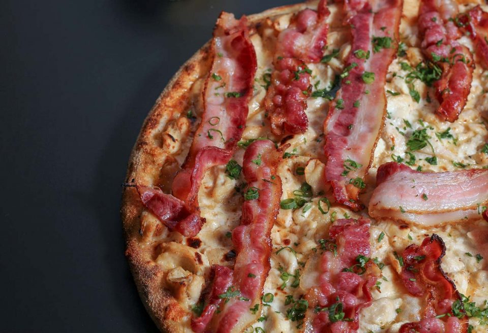 Jack Sassinhora – Mussarela, tiras de frango, molho de alho, bacon em tiras e cheiro verde.