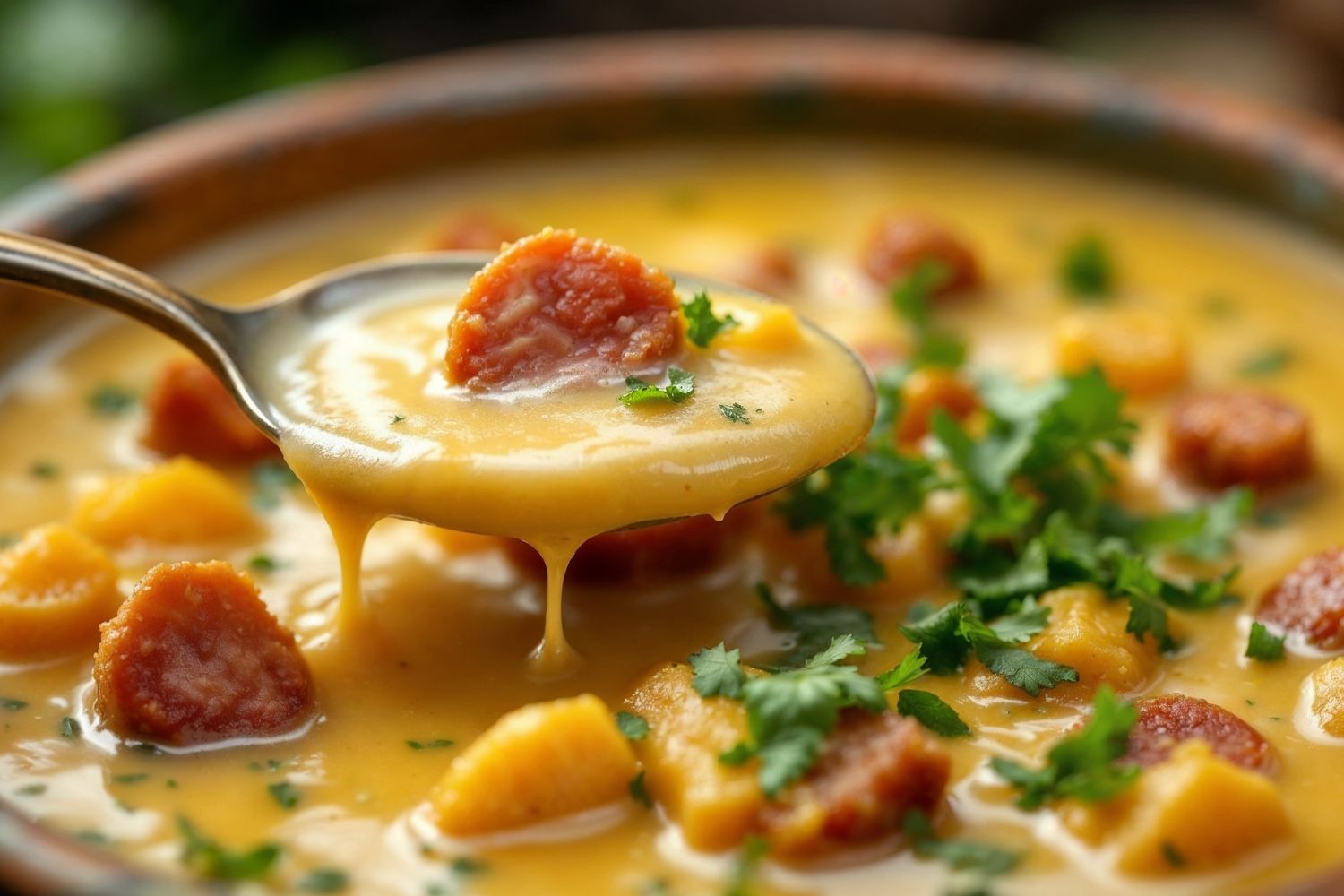 Não tem erro: Caldo de Mandioca com Calabresa é conforto puro no prato! Cremoso, saboroso, fácil de fazer (obrigado, panela de pressão!) e perfeito para aquecer o corpo e o coração nos dias mais frios. Uma delícia bem brasileira que todo mundo ama!
