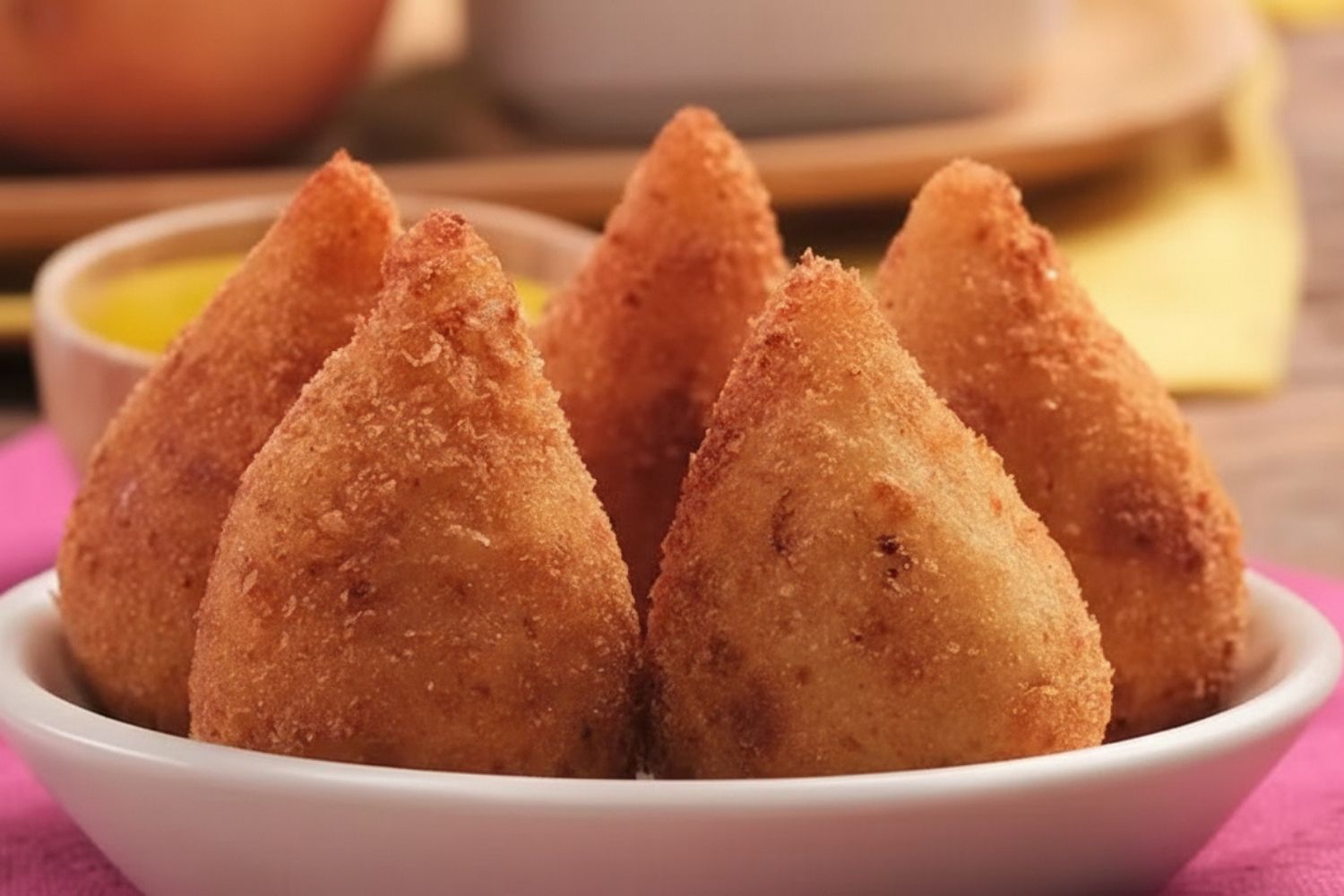 Se existe um salgado que reina absoluto no coração dos brasileiros, é a coxinha. E a versão com massa de batata é, para muitos, a perfeição em forma de quitute. A batata deixa a massa incrivelmente leve, macia e saborosa, criando o contraste ideal com a casquinha dourada e crocante e um recheio de frango super cremoso.