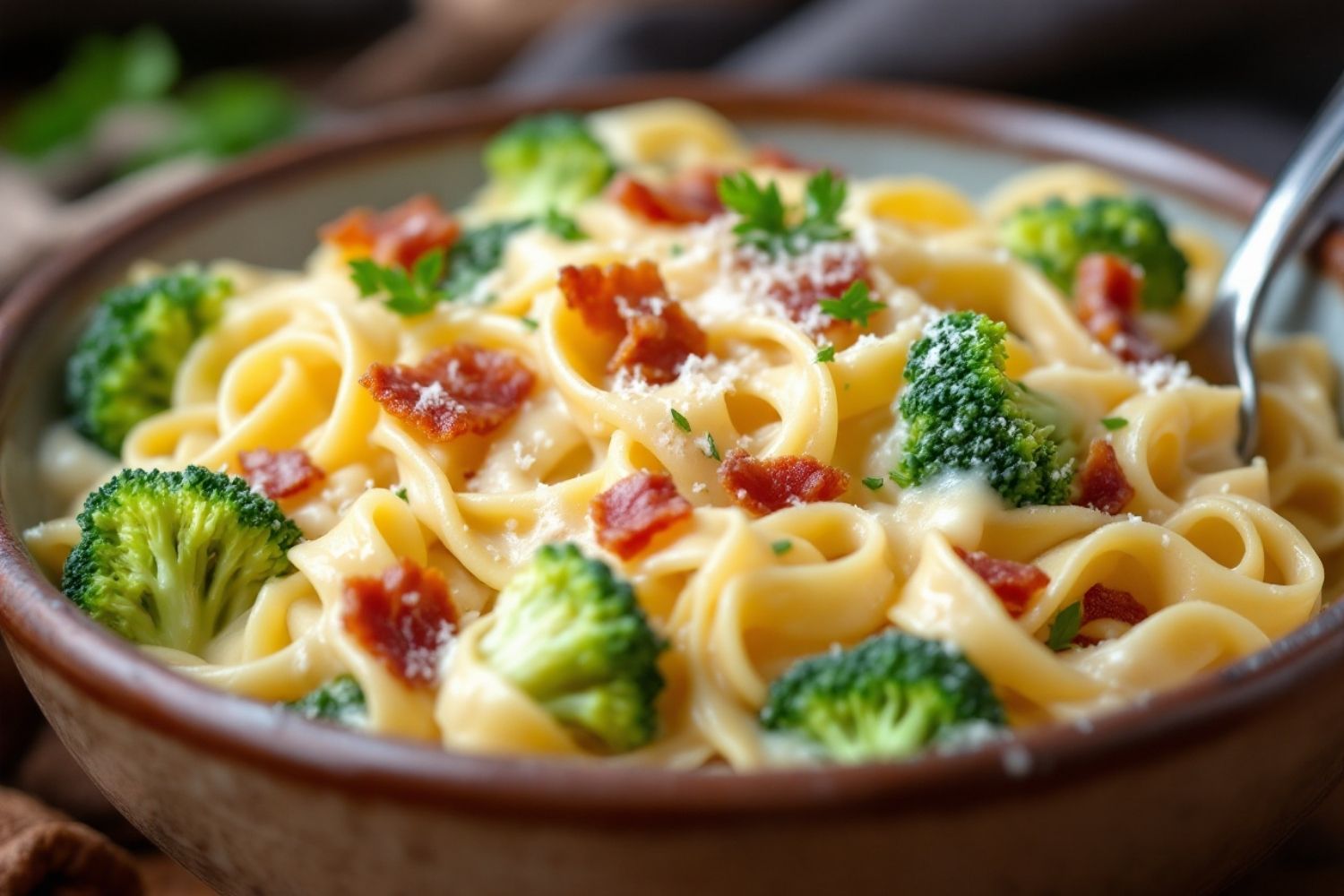Macarrão cremoso com brócolis e bacon: Receita fácil