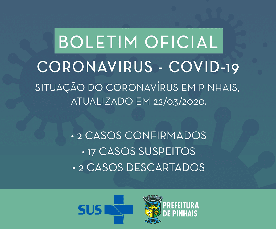 A Secretaria de Saúde também informou que outro caso suspeito foi descartado, a de um familiar do primeiro paciente infectado do município. Com esses novos resultados, sobe para dois o número de casos confirmados de Coronavírus em Pinhais, 17 aguardam o resultado dos exames e um caso foi descartado.