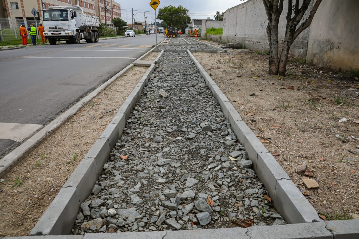 Os trabalhos estão próximo ao Rio Atuba e começaram com a revisão completa no sistema de drenagem, que capta e destina as águas da chuva. Paralelo a esta obra, é realizada a construção da ciclovia, calçada em concreto poroso e da criação de estacionamento.